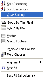 To cancel all the selected sorting , right click on any column header and choose the item Clear Sorting in the context menu.