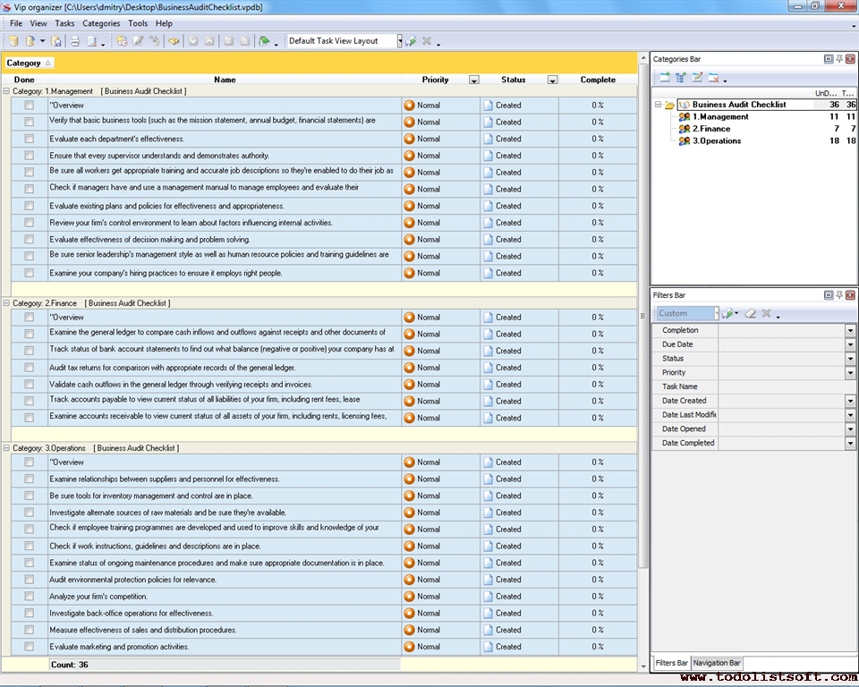 Business audit is a thorough analysis of a firm’s past and current state in terms of management, finance and operations in order to detect potential problems. The following Business Audit Checklist highlights key steps and tasks you can complete to conduct such an analysis.   Business Audit Checklist