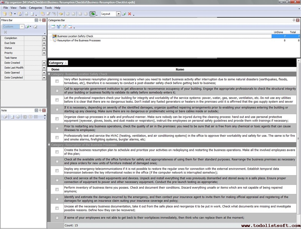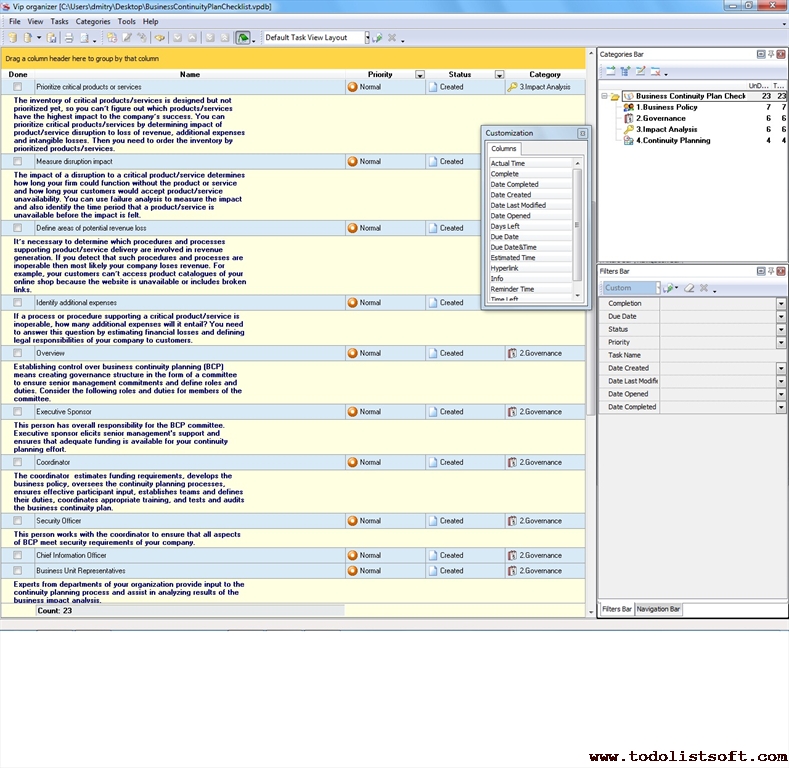 A business continuity plan describes how to keep an organization operating and deal with business recovery in order to ensure further existence and development of the organization. In this Business Continuity Plan Checklist you will read on how to plan for continuity of your business.   Business Continuity Plan Checklist