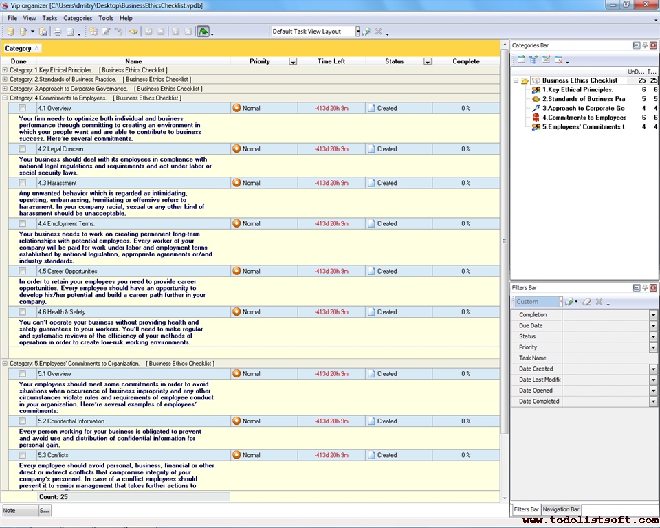 To put it simply, a business ethics policy is a collection of rules and requirements that say employees what is wrong to do and what is right. This Business Ethics Checklist uses simple descriptions and suggestions to explain how to develop a business ethics policy for a typical organization. Business Ethics Checklist
