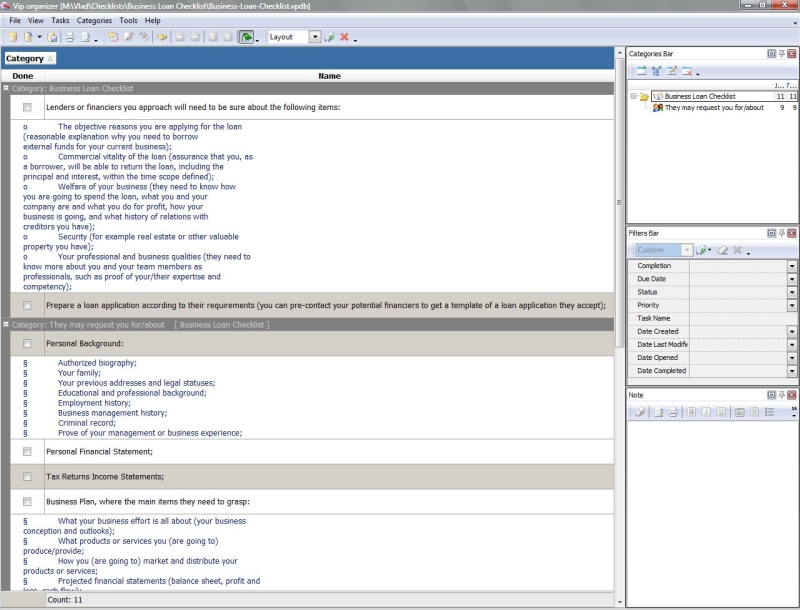 This Business Loan Checklist is designed to support those who are going to approach financiers with a need of borrowing a loan for their businesses. With a help of this checklist you will know what you need to get prepared for in order to get your loan. Business Loan Checklist