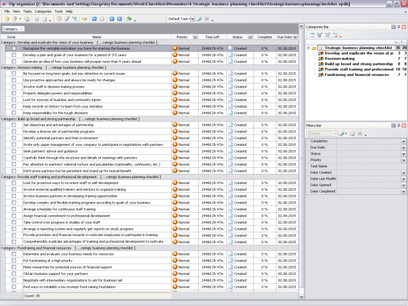 Development of a profitable business is an achievable goal but it requires well-considered strategy planning. The strategic business planning allows to keep you r business stable, manage risks and prevent failure. Use the checklist for strategic business planning to wisely assign funds and provide stable development. Career Development Checklist