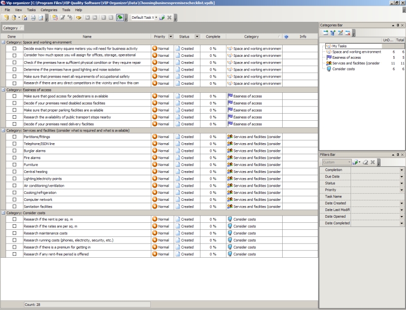 Choosing business premises checklist is created to consider the important things such as main capabilities of your business premises, easiness of access for customers and employees, available services and facilities etc. This checklist is not exhaustive and cannot include all possible options, but it can be taken as basis for further elaboration and can be easily modified to meet your specific requirements.