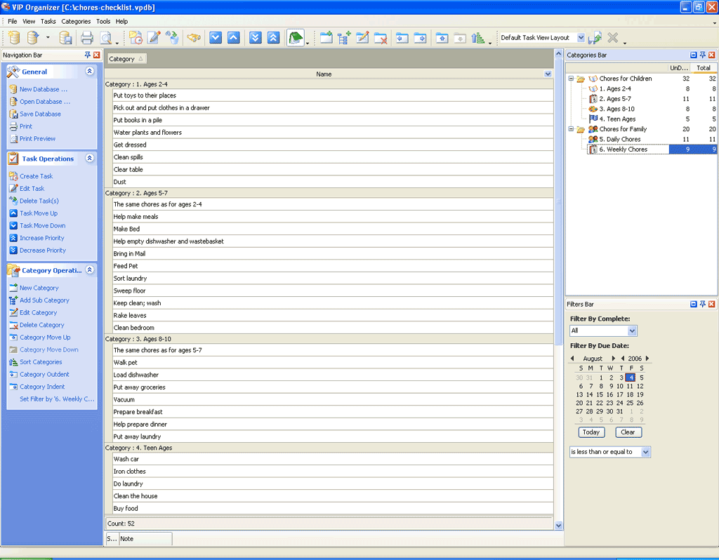 Simple and effective to-do list software to plan daily chores, trips, wedding, etc. |