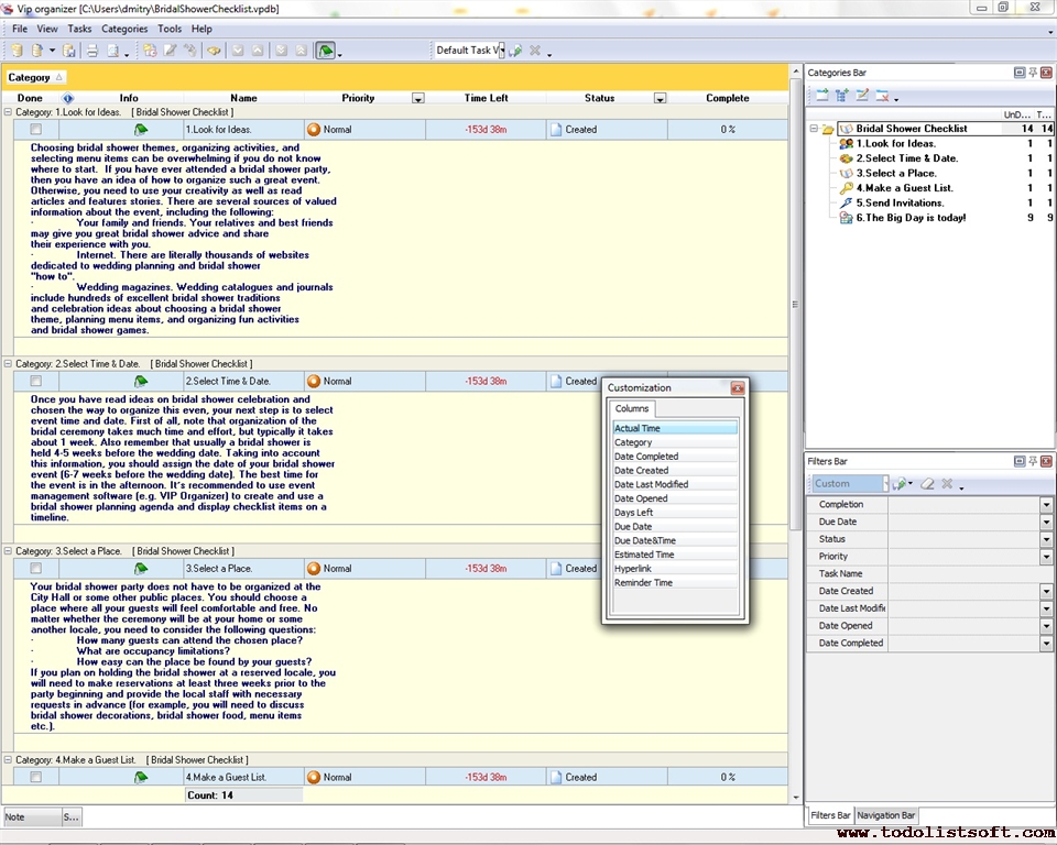 Wedding Planning Checklist is a 'to do list' for you to avoid wedding fuss. Use this