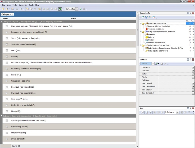 Baby Needs Checklist Baby Needs Checklist is a 'to do list' template that will help you to prepare everything necessary before and after baby is born. Use this Baby Needs template to buy all you need for your baby beforehand .