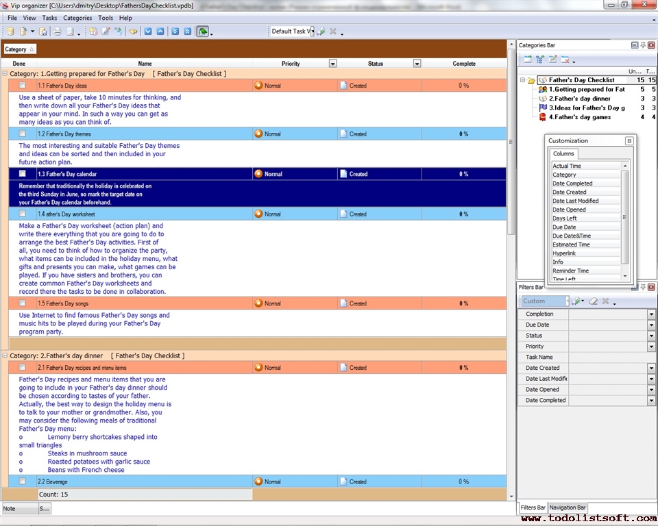 Father's Day is one of the warmest and funniest family holidays. Though it is not an official holiday, it is a legal holiday that people like to celebrate on the third Sunday in June. The given below Father's Day Checklist is designed to help people better understand how to celebrate this great holiday.