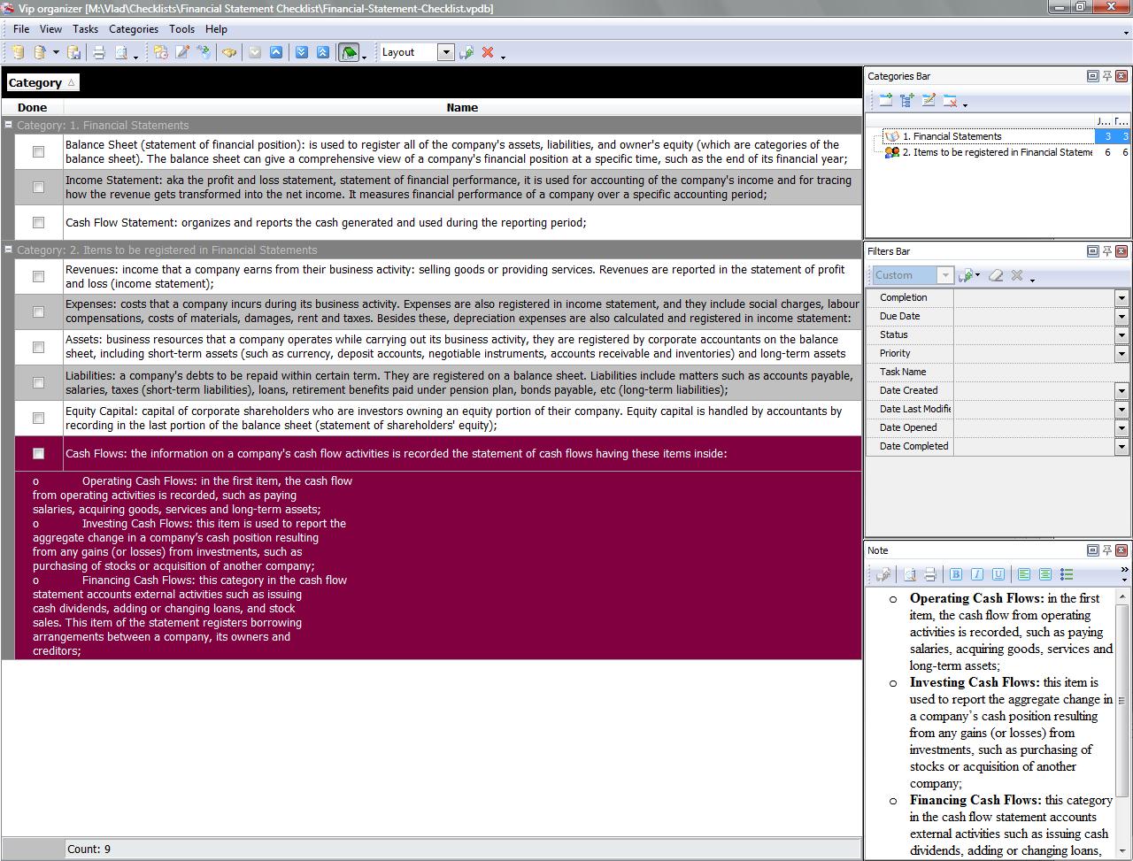 This Financial Statement Checklist will be helpful to all those who would like to learn what kind of accounting documents they may need in their business activity to report their regular financial operations, incomes and costs.   Financial Statement Checklist