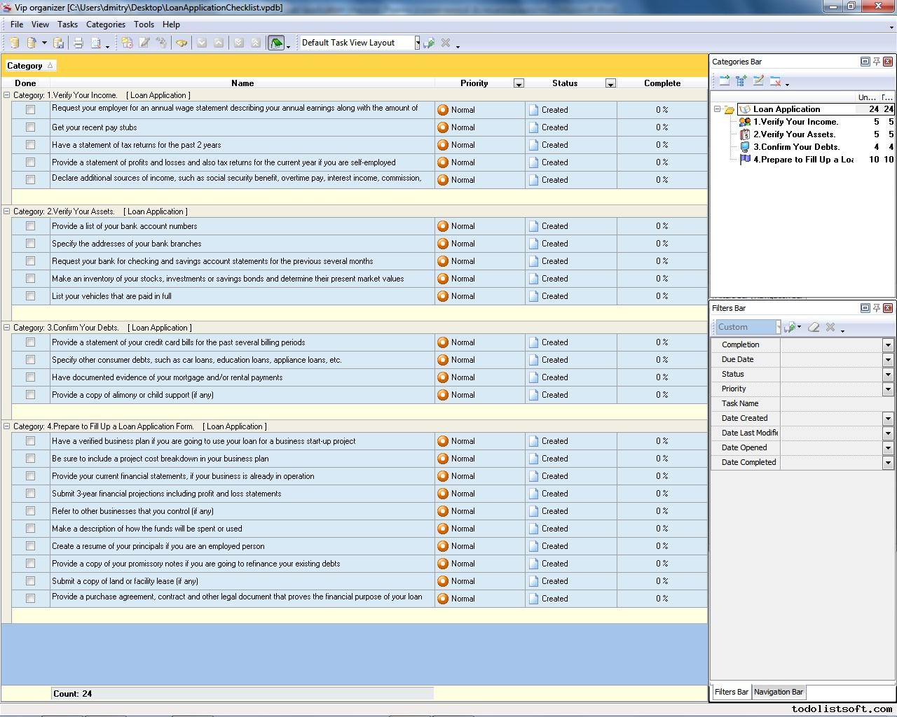 What things need to be considered when applying for a business loan? Is there a need to have a business plan and cost projections? How to verify income, assets and debts? You can read the Loan Application Checklist to answer all these and other questions. The checklist will help you understand how to apply for a business loan. Loan Application Checklist