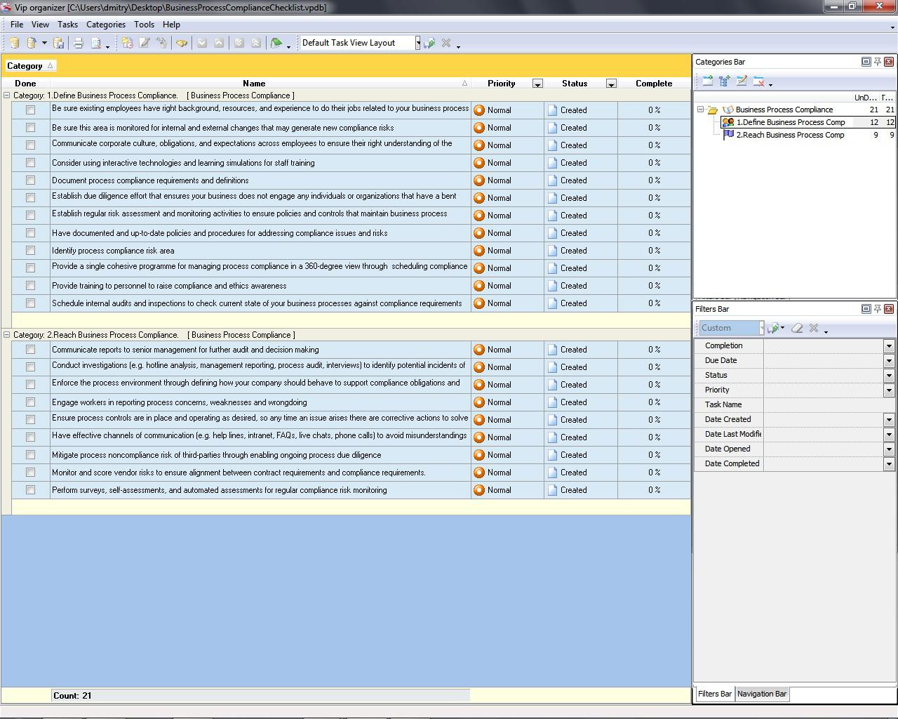 Because most business environments are influenced by uncertainty, various companies have to plan for process compliance in order to ensure business integrity and profitability. Read this Business Process Compliance Checklist to find out how to define and ensure compliance of business processes in your company.