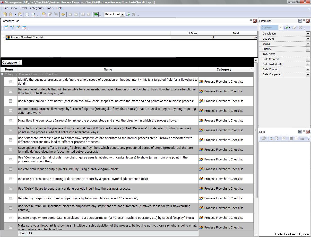 Business Process Flowchart Checklist is made for enterprise executives who wish to schematize their business processes to obtain their vivid representations. With an aid of this checklist you can study the major flowchart shapes and how they should be used to represent your process.
