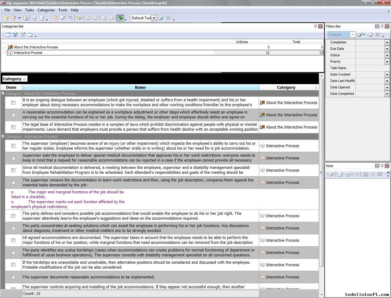 This Interactive Process Checklist will be helpful both to employees and employers to know their duties and rights in terms of Interactive Process which is the term meaning a dialog between an employee who suffers from a health impairment and his or her employer who considers reasonable accommodations to facilitate further labour of this person.