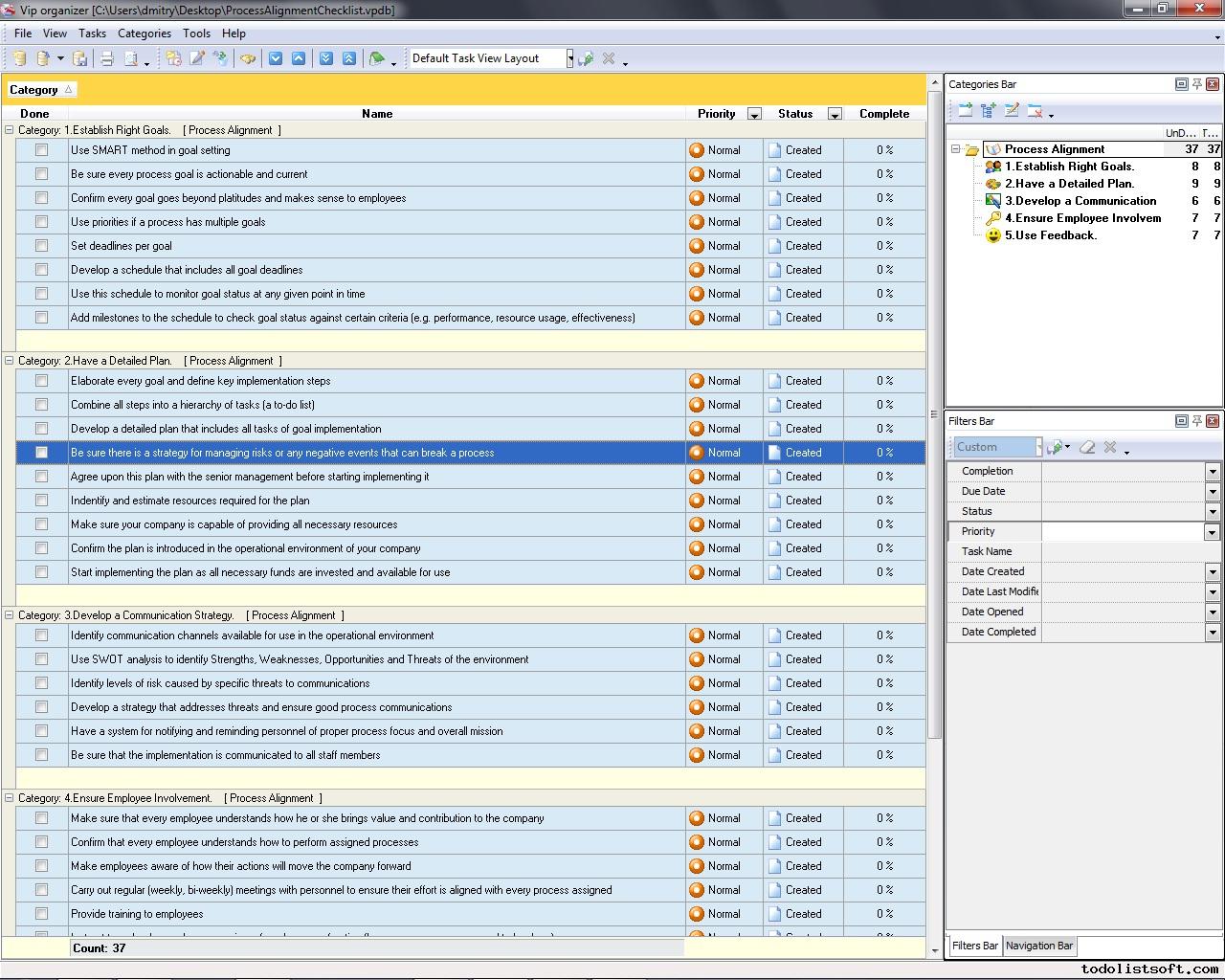 Aligning a process means systematically arranging the process’s goals with a common purpose or mission. An aligned process always contributes to overall success of high-level objectives. This Process Alignment Checklist explains how to make business processes aligned with strategic goals.