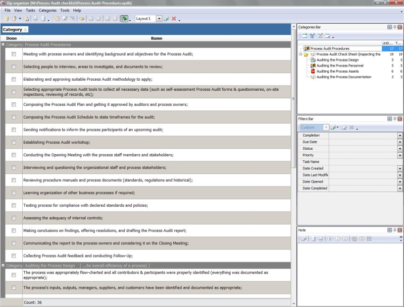 This Process Audit checklist is created to help you in organizing this important process that makes sure of effective functioning of any business process you may need to audit (inspect and examine for compliance and efficiency). This Process Audit checklist works as a process audit definition embracing essential procedures, and as a check sheet of points to examine on a process.