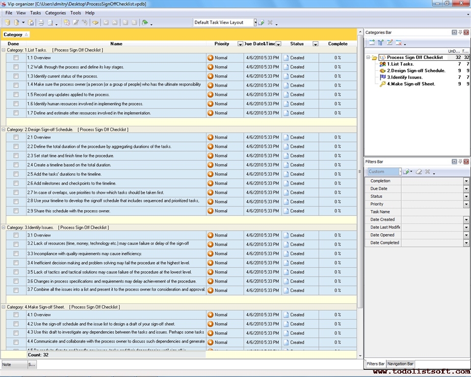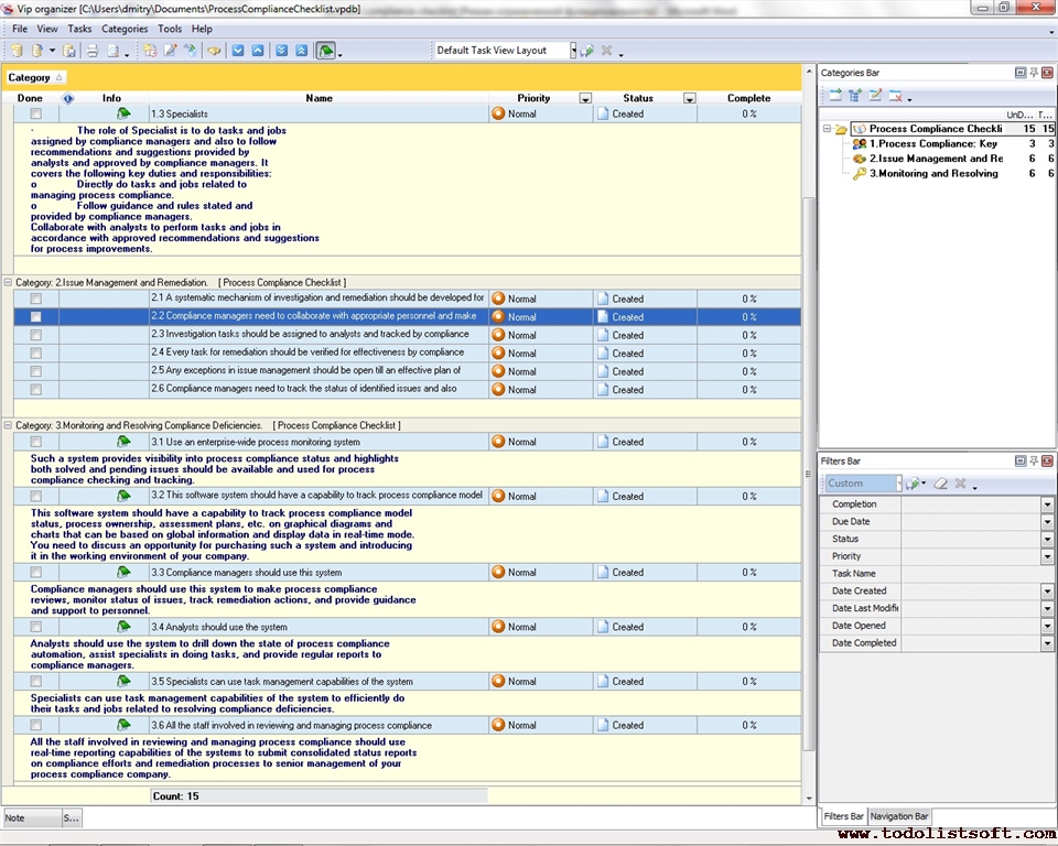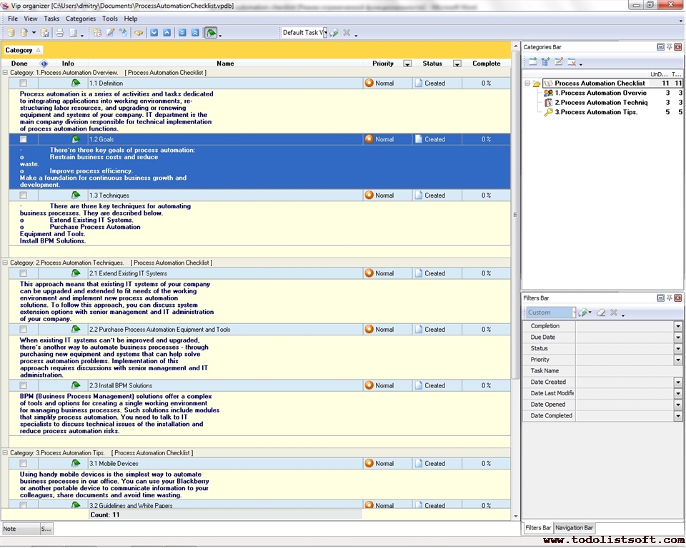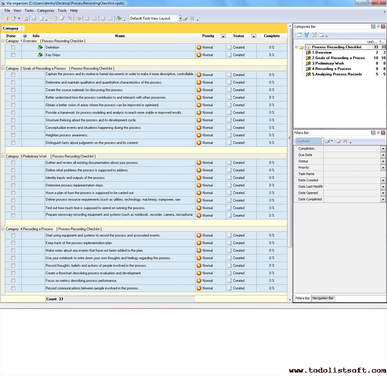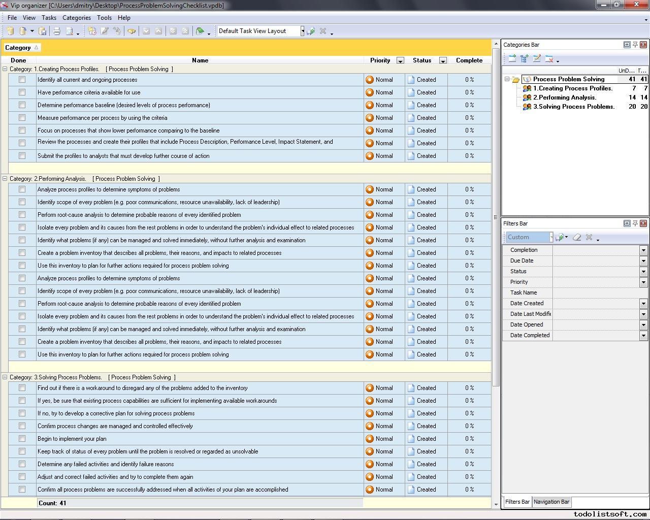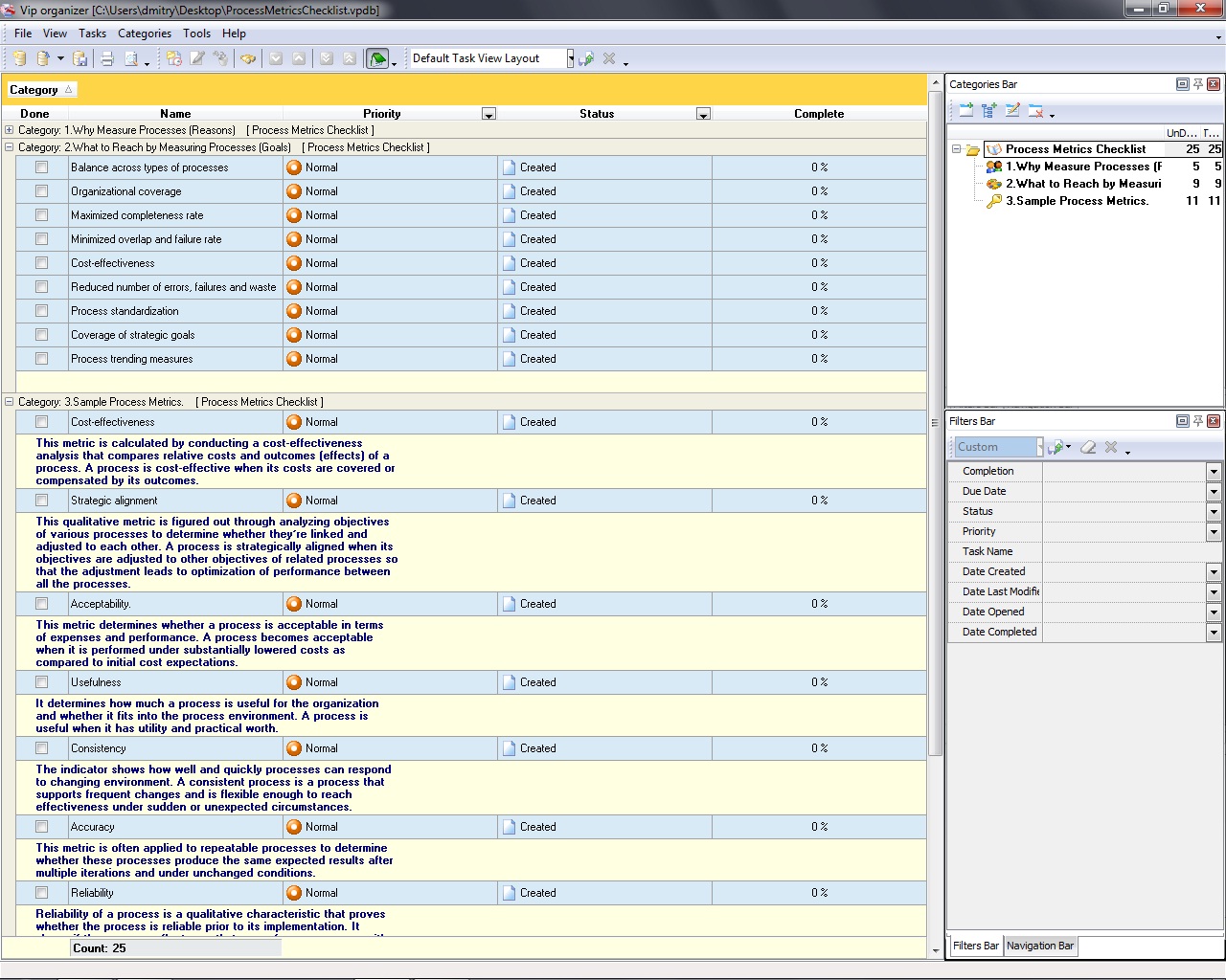 This Process Workflow Checklist describes three steps for performing a typical process workflow. It will be helpful for various specialists involved in process planning and management. The checklist can be uploaded into VIP Organizer which is a task management program.