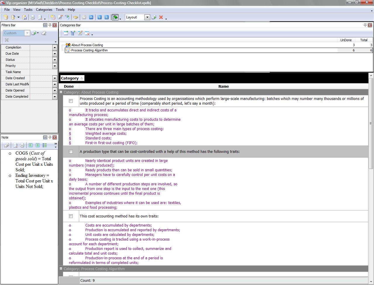 This Process Costing Checklist is created to be helpful to all those executives who wish to apply this costs accounting methodology in their production control efforts. With a help of this checklist you can follow the facts and algorithm of Process Costing – a technique which suits the needs of a large-scale manufacturing.