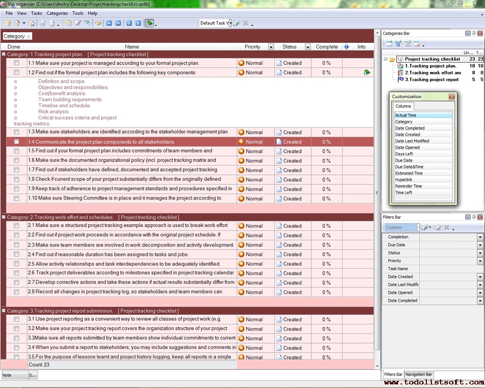 Project Tracking  Checklist