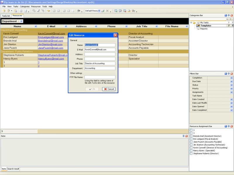 • VIP Team To Do List If activity of a company supposes that tasks and jobs should be assigned to employees of Financial or Accounting Department, VIP Team To Do List allows assigning tasks to the department employees and send them their tasks by email or give them a printable to do list.