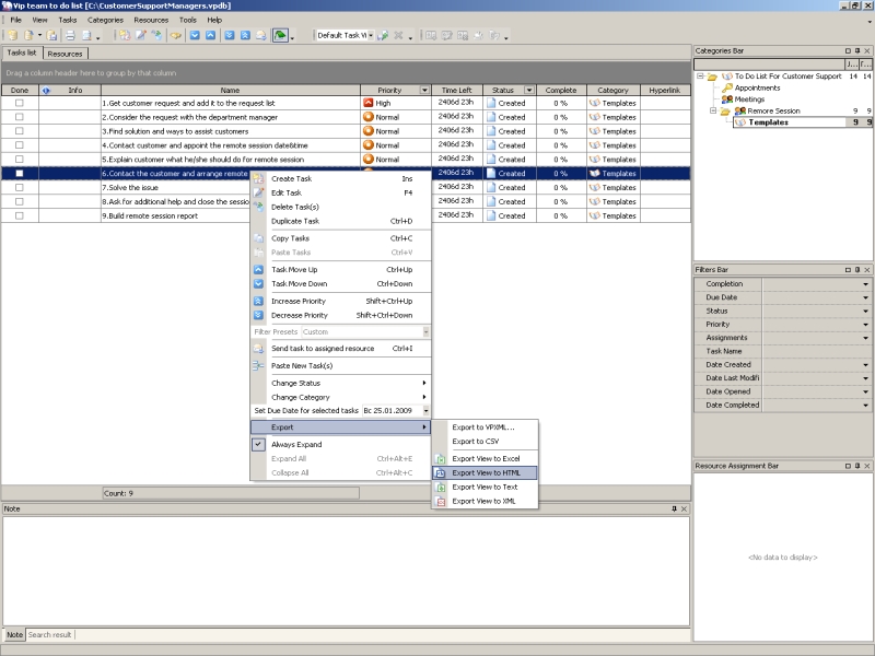 • VIP Team To Do List If the customer support manager needs to share tasks and customer requests between employees of the department, VIP Team To Do List allows assigning tasks to the team members and send them their tasks by email or give them a printable to do list.