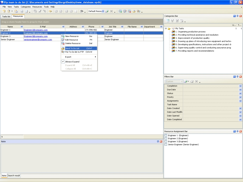 • VIP Team To Do List. If your engineering projects suppose that some tasks should be assigned to other professionals, VIP Team To Do List allows assigning tasks to other team members and send them their tasks by email or give them a printable to do list.