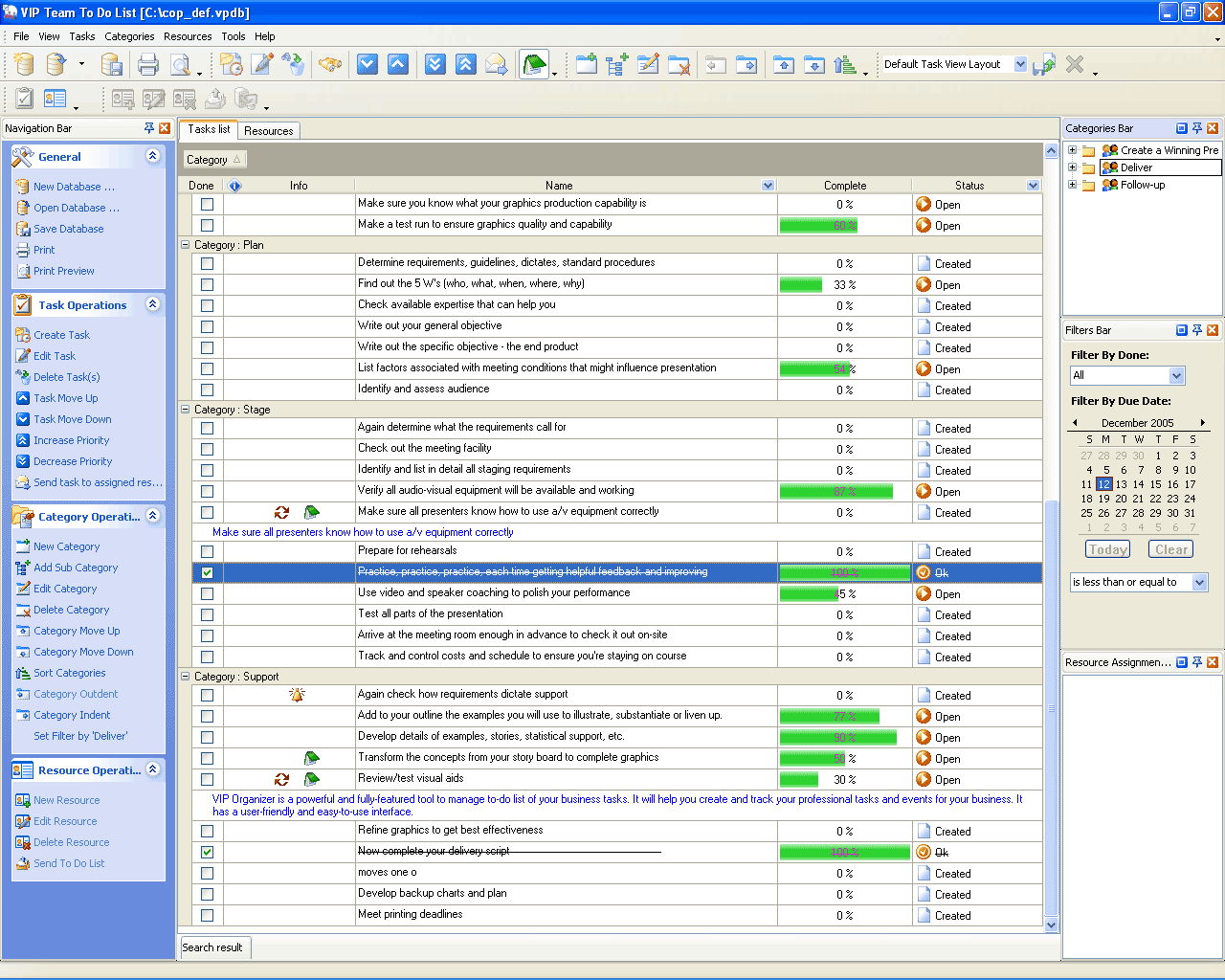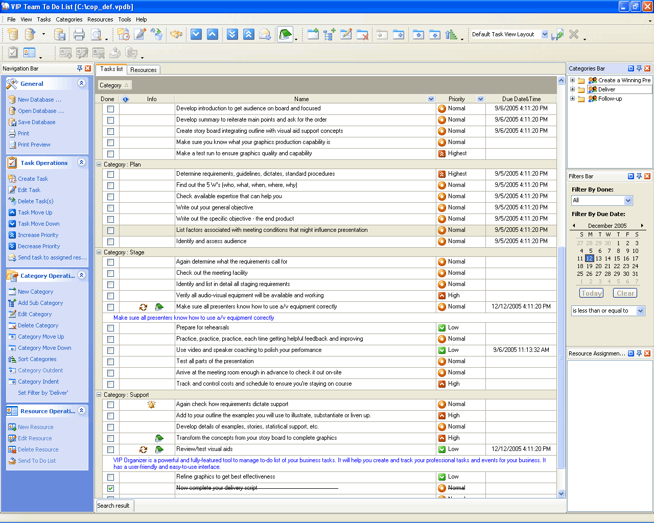 VIP Team To Do List is powerful time management and scheduling application tailor-made for business management purposes. If you don’t need task assignment feature, we recommend you VIP Organizer as your personal planning tool. It offers you various functionality such as tree-structured category system, export to different file formats and so on. VIP Simple To Do List is the most easy-to-use and intuitive personal solution for self-organization improvement.