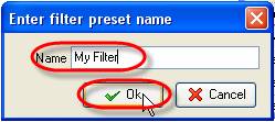 3. Enter filter name into ‘Name’ entry field and click ‘Ok’