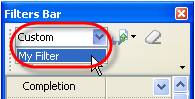 4. To apply filter that you saved earlier click on ‘Custom’ drop-down list on Filters toolbar and select required filter from the list