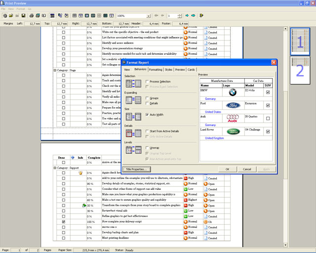 View export to MS Excel, HTML, XML, Text and CSV formats lets you share your tasks data with other users and exchange it with other applications.