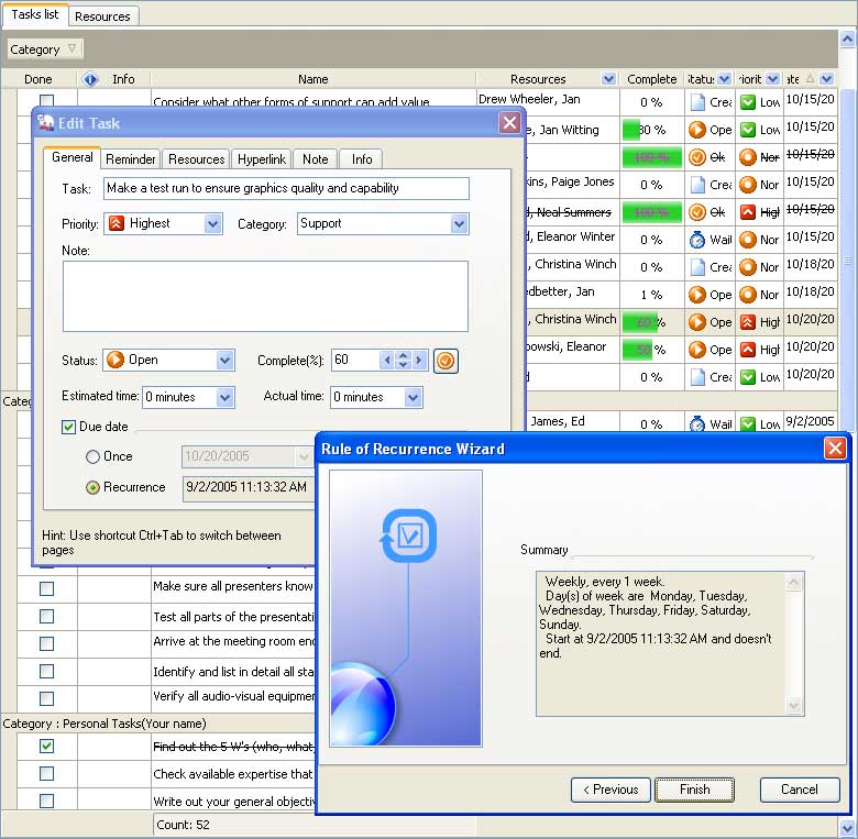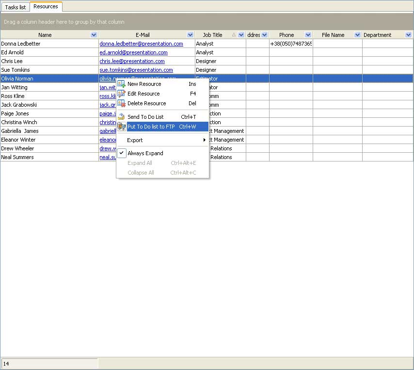 With a single mouse click you can publish or update your To Do List for your team members on Web via FTP and automatically notify them about it by e-mail.