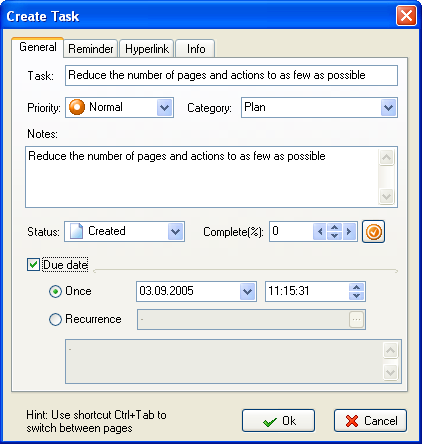 Notes - a field for additional description to the task.