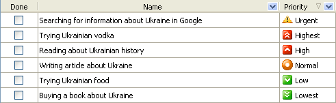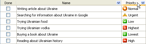 After setting priority of all your tasks you can sort them by clicking on the headline of Priority column to highlight the most important things from the list. |