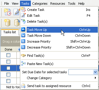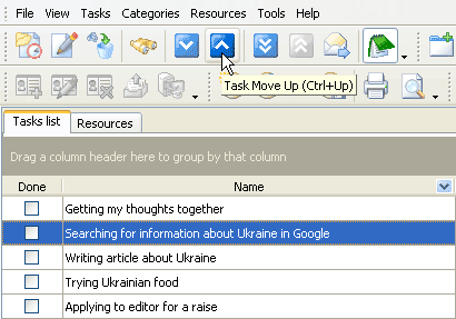 Alternative way of focusing on main things is setting the tasks' order. You can move tasks up and down your list to show the degree of their urgency and importance. |