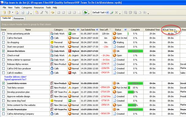 Sort your tasks by their Actual time from minimal Actual time to maximum one and vice versa by clicking on ‘Actual Time’ column header on Task List grid.